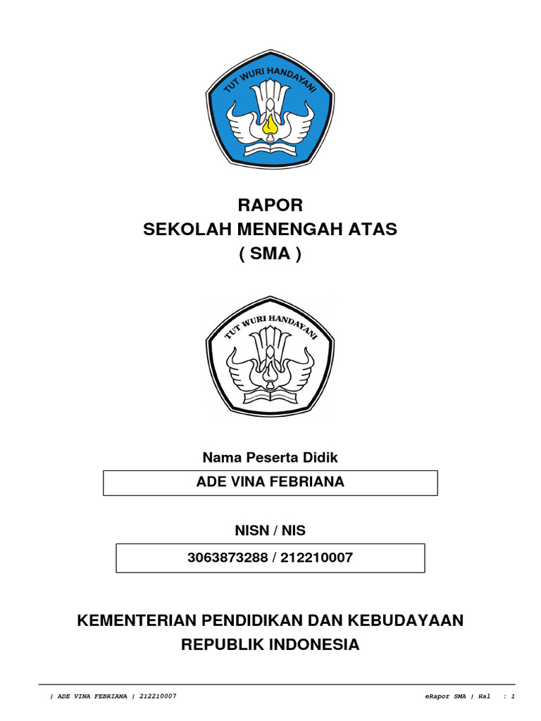 | ADE VINA FEBRIANA | 212210007 eRapor SMA | Hal : 1
