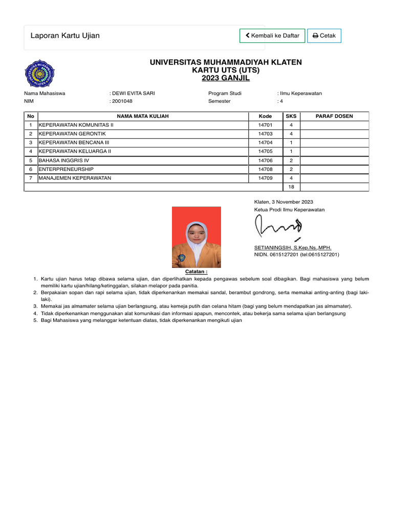 Laporan Kartu Ujian Kembali ke Daftar Cetak