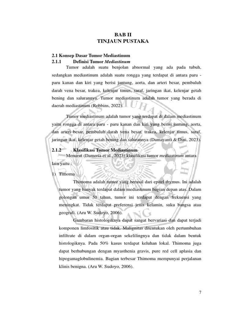tumor yang banyak terdapat dalam mediastinum bagian depan atas. Dalam