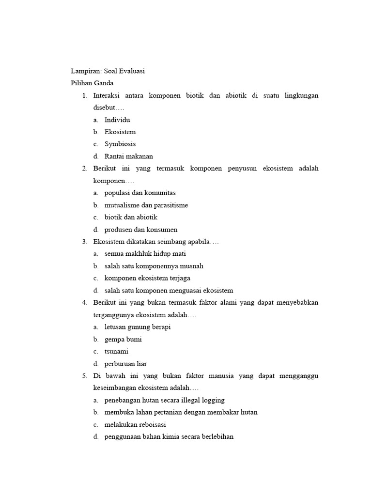 2. Berikut ini yang termasuk komponen penyusun ekosistem adalah