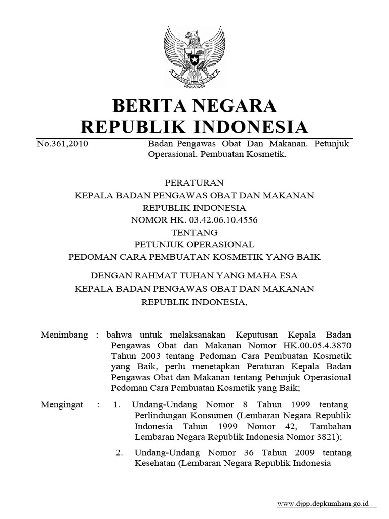 No.361,2010 Badan Pengawas Obat Dan Makanan. Petunjuk