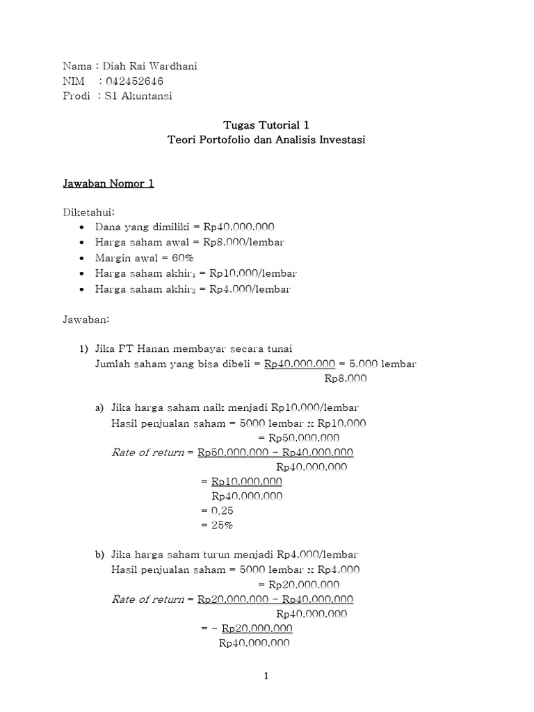 Harga saham akhir1 = Rp10.000/lembar