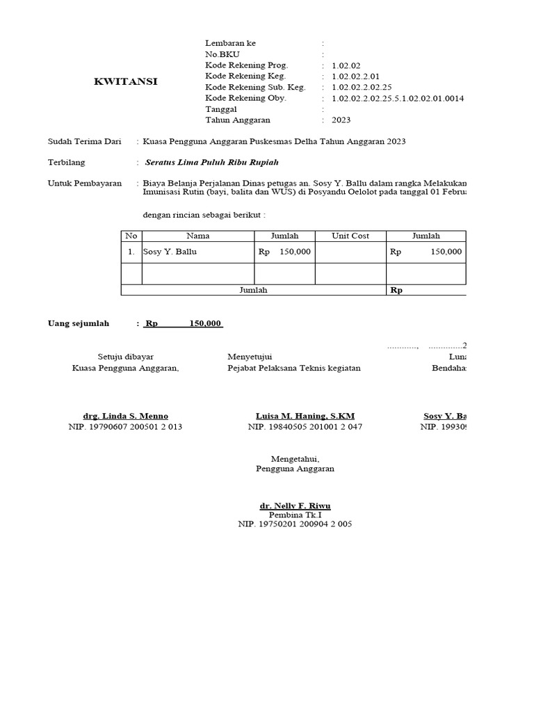 Sudah Terima Dari : Kuasa Pengguna Anggaran Puskesmas Delha Tahun Anggaran 2023
