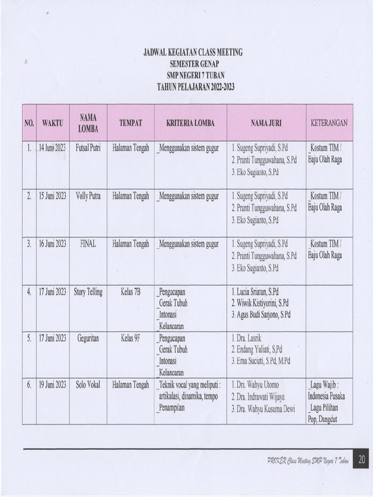 Ketentuan Kegiatan Lomba Classmeeting Semester Genap 2425