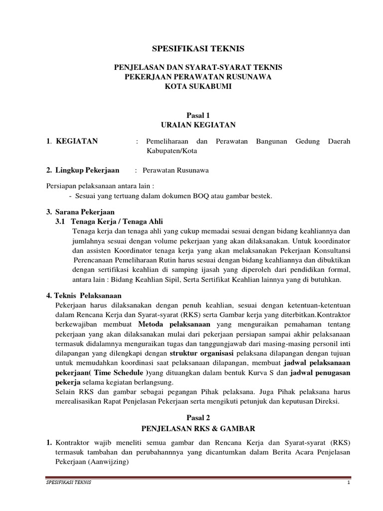 dalam Rencana Kerja dan Syarat-syarat (RKS) serta Gambar kerja yang diterbitkan.Kontraktor