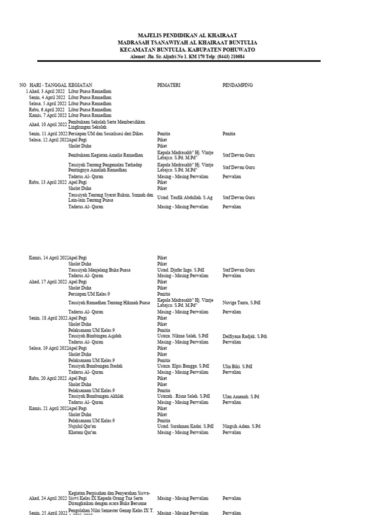 Rabu, 27 April 2022 Masing - Masing Perwalian Perwalian