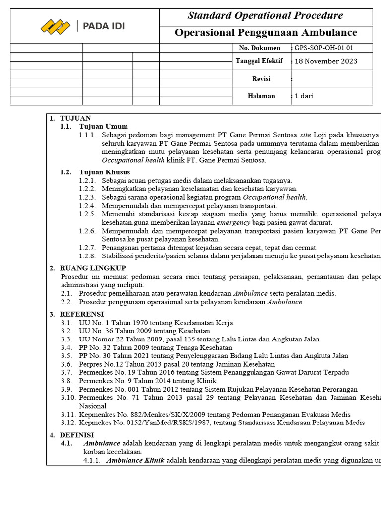 5.2.6. Setiap personil yang mengoperasikan Ambulance wajib memahami, menaati dan menerap