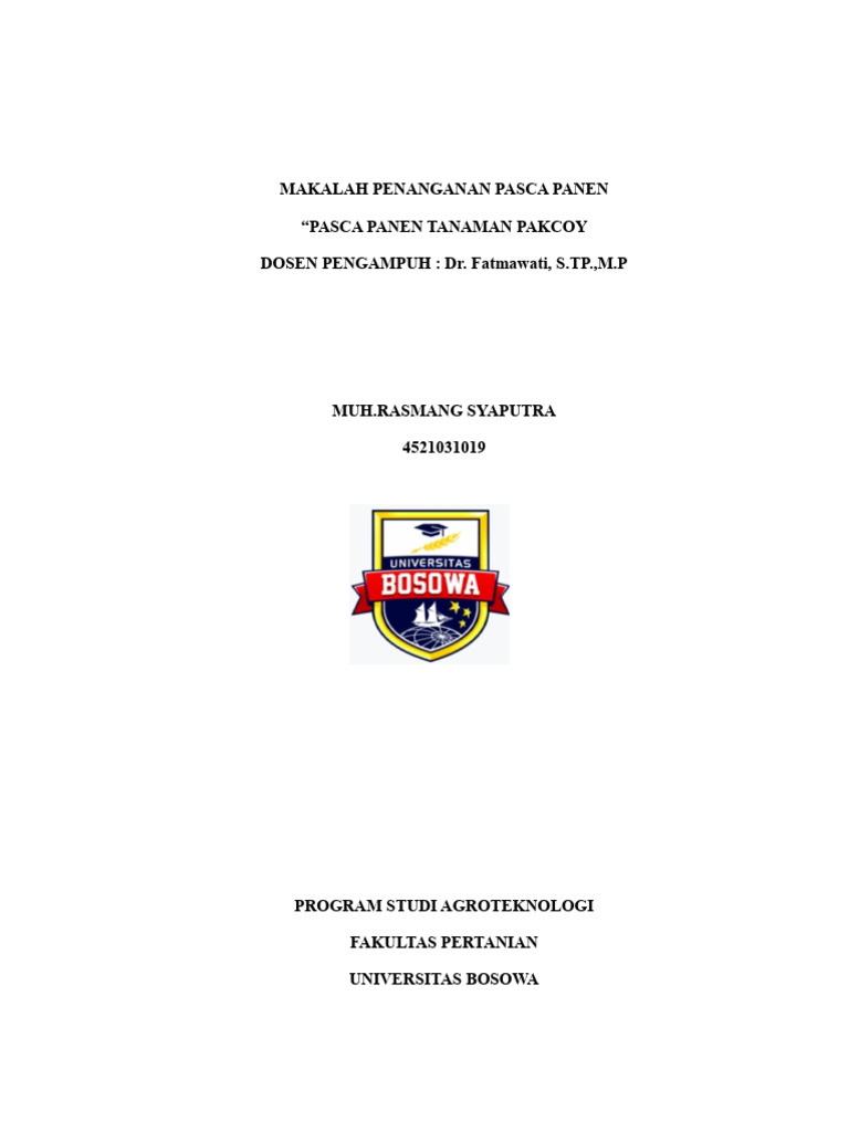 “PASCA PANEN TANAMAN PAKCOY
