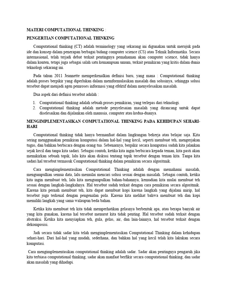 Computational thinking (CT) adalah terminology yang sekarang ini digunakan untuk merujuk pada