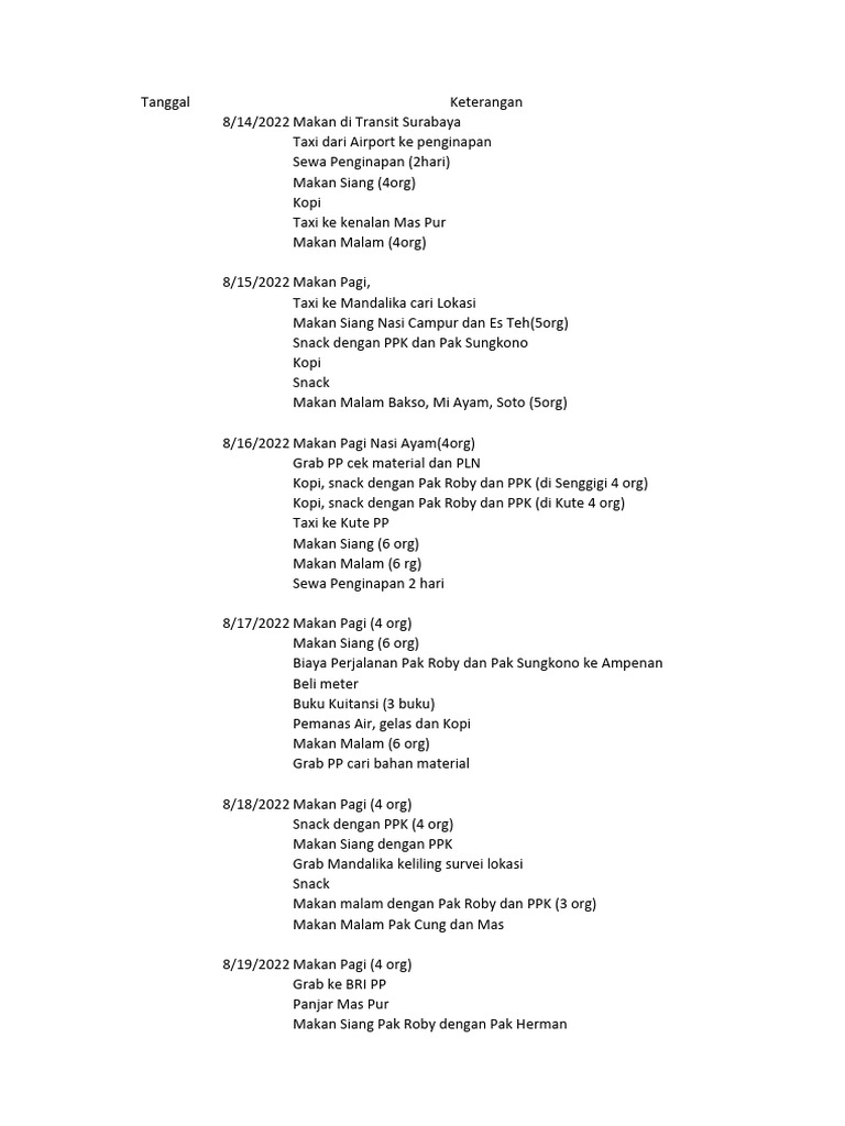 Biaya Perjalanan Pak Roby dan Pak Sungkono ke Ampenan