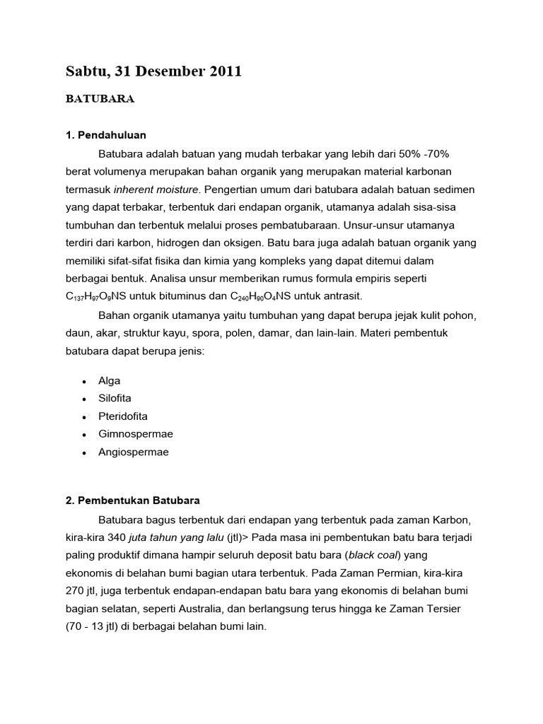 terdiri dari karbon, hidrogen dan oksigen. Batu bara juga adalah batuan organik yang