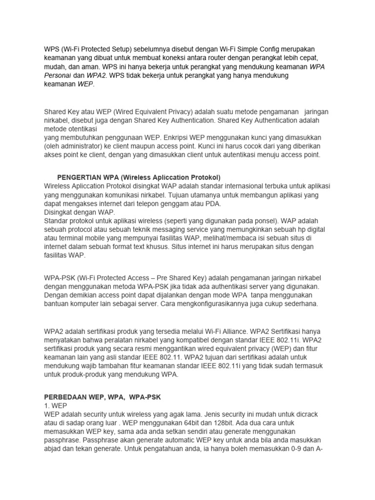 atau di sadap orang luar . WEP menggunakan 64bit dan 128bit. Ada dua cara untuk