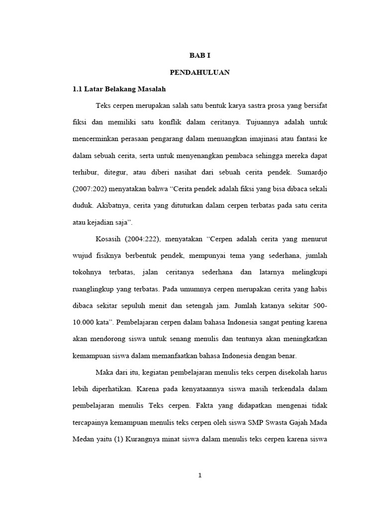 10.000 kata”. Pembelajaran cerpen dalam bahasa Indonesia sangat penting karena