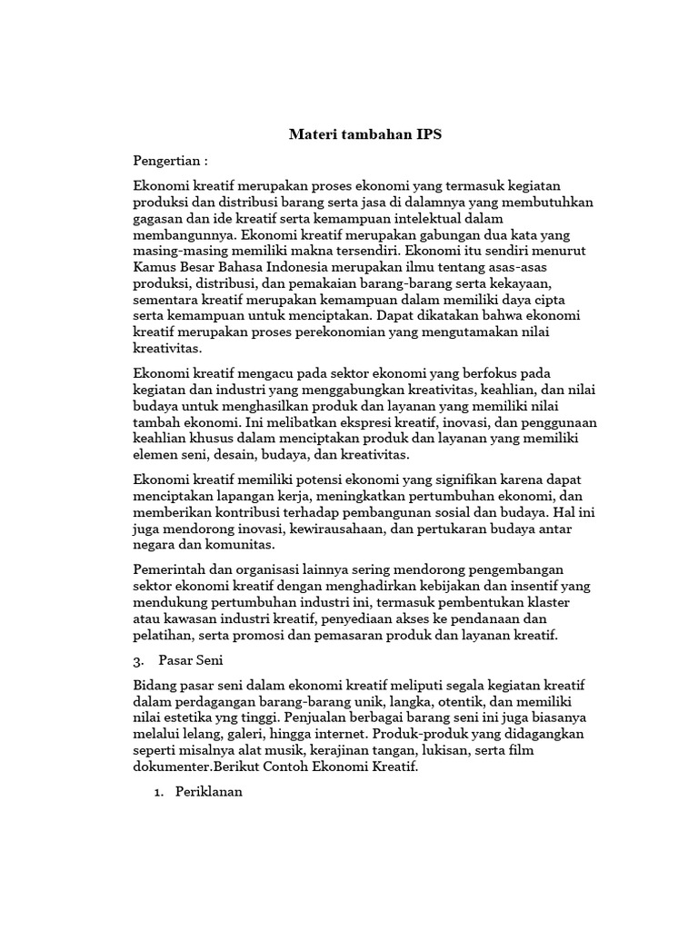 dokumenter.Berikut Contoh Ekonomi Kreatif.