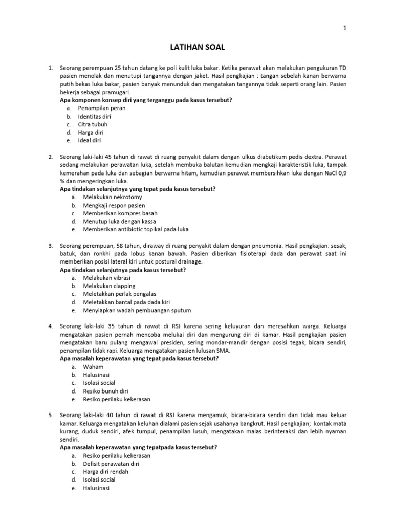 1. Seorang perempuan 25 tahun datang ke poli kulit luka bakar. Ketika perawat akan melakukan pengukuran TD