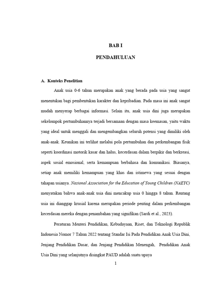 Penelitian yang dilakukan oleh Sardi, et al., (2023) pada anak usia dini dalam