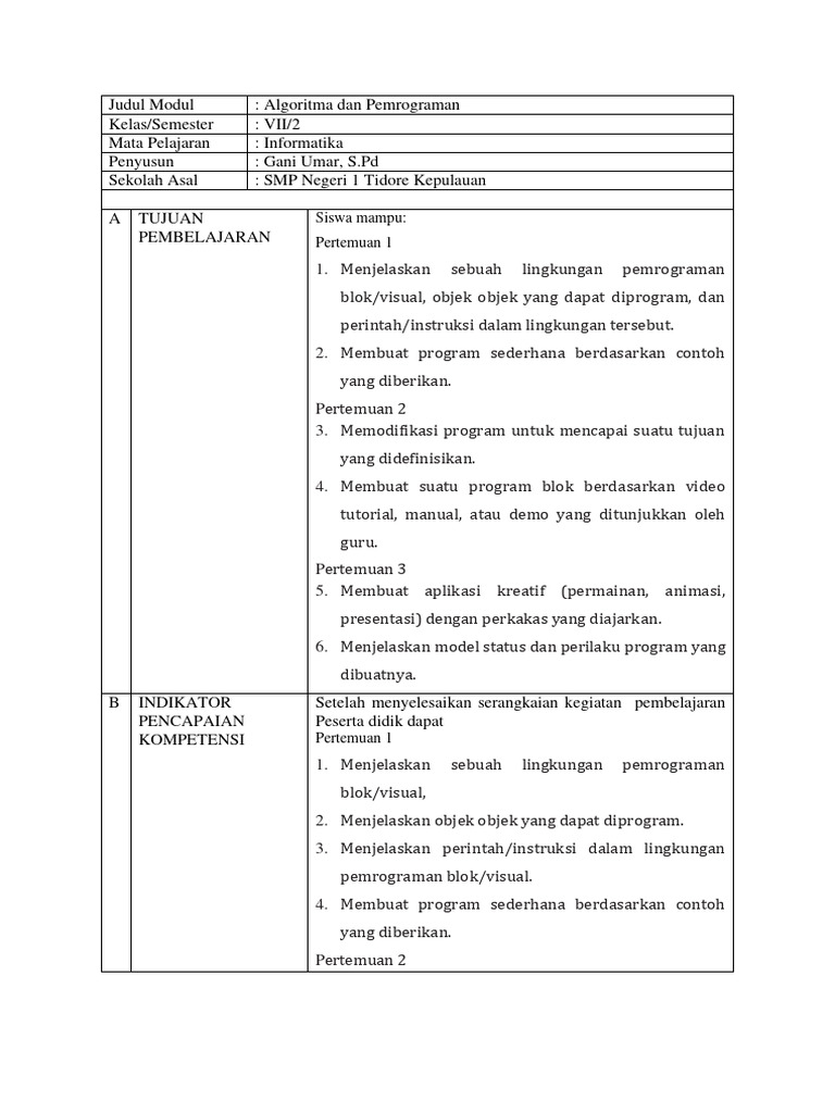 1 Memodifikasi Tidak mampu Mampu Mampu Mampu