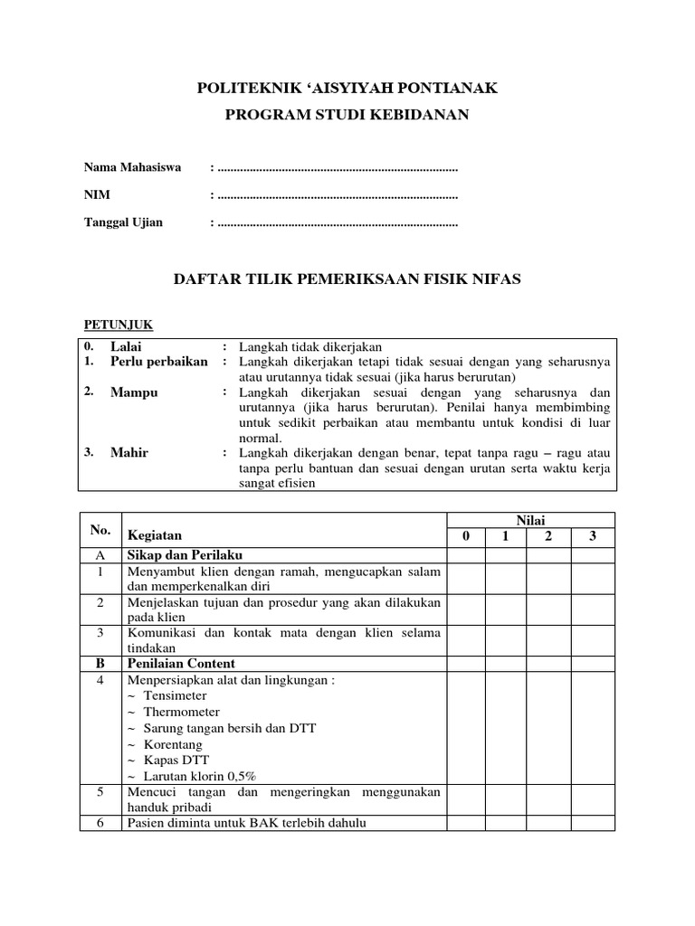DAFTAR TILIK PEMERIKSAAN FISIK NIFAS