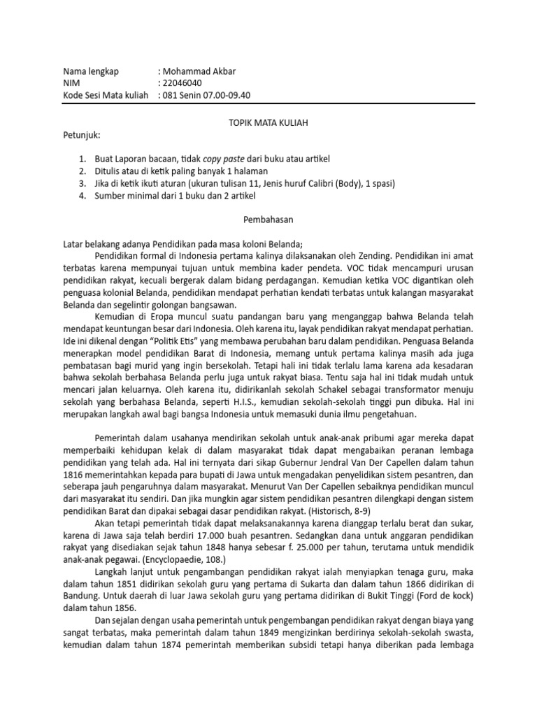 1. Buat Laporan bacaan, tidak copy paste dari buku atau artikel