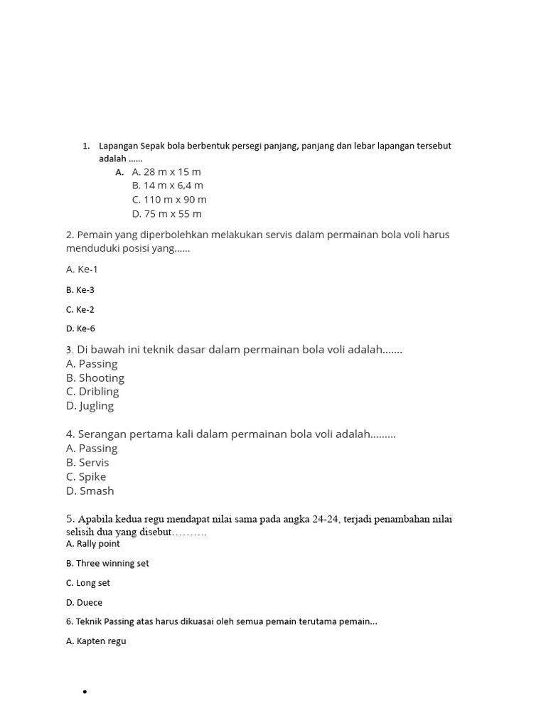 3. Di bawah ini teknik dasar dalam permainan bola voli adalah…….