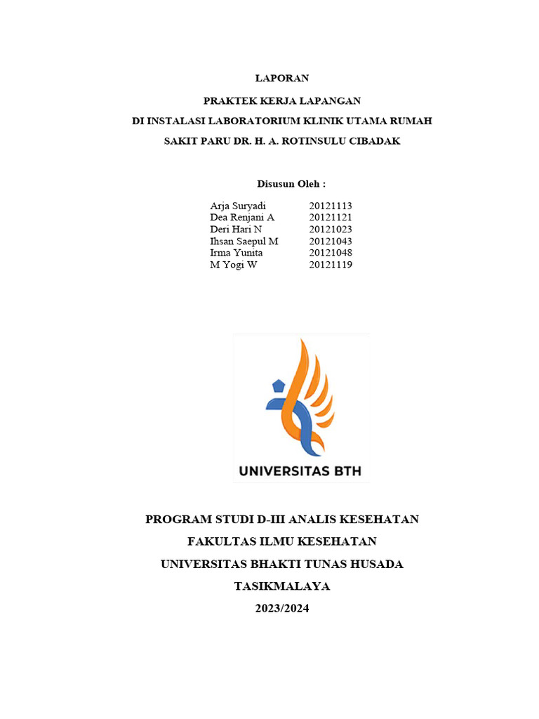 diselesaikan oleh seluruh mahasiswa studi DIII TLM Universitas Bhakti Tunas