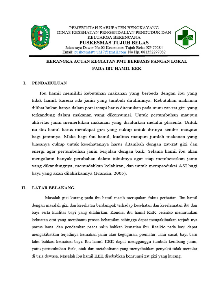 KERANGKA ACUAN KEGIATAN PMT BERBASIS PANGAN LOKAL