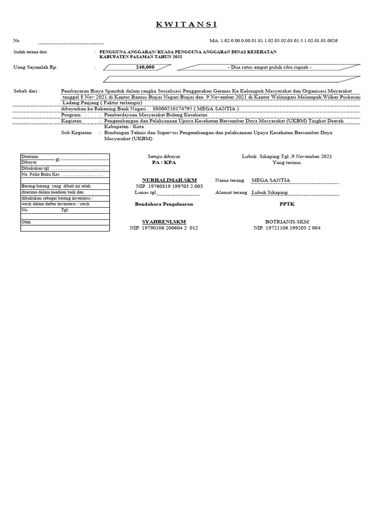 Diterima Setuju dibayar Lubuk Sikaping Tgl ,9 November 2021