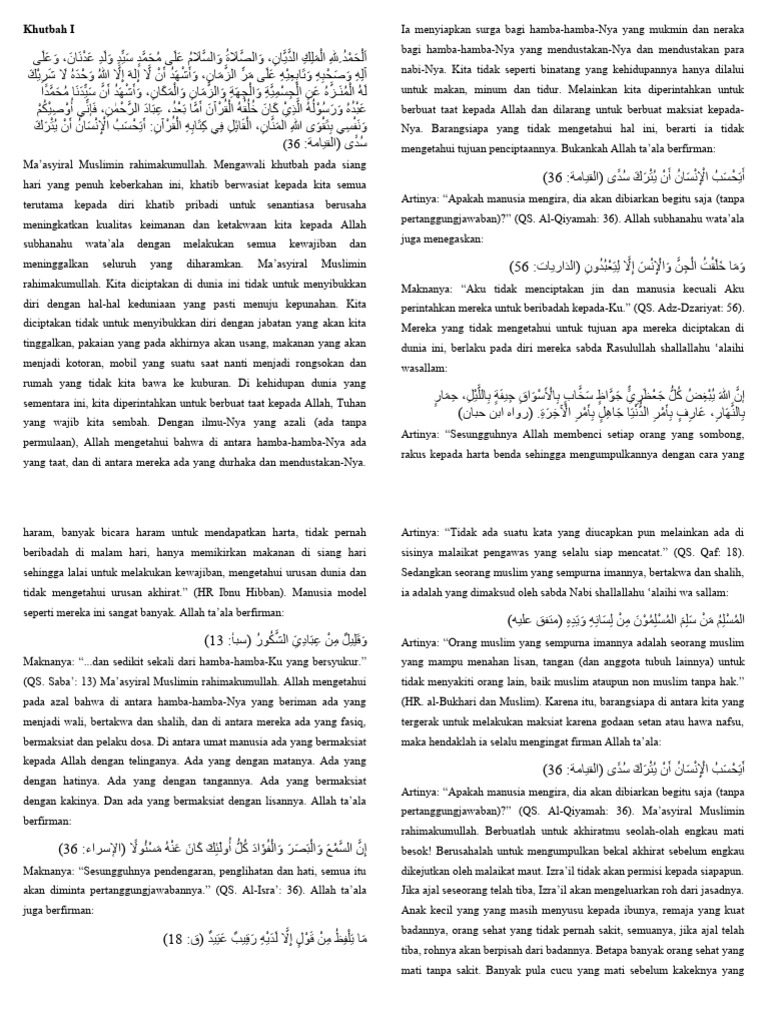terutama kepada diri khatib pribadi untuk senantiasa berusaha Artinya: “Apakah manusia mengira, dia akan dibiarkan begitu saja (tanpa