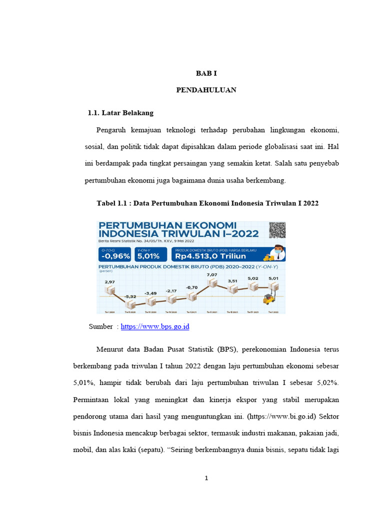 Tabel 1.1 : Data Pertumbuhan Ekonomi Indonesia Triwulan I 2022