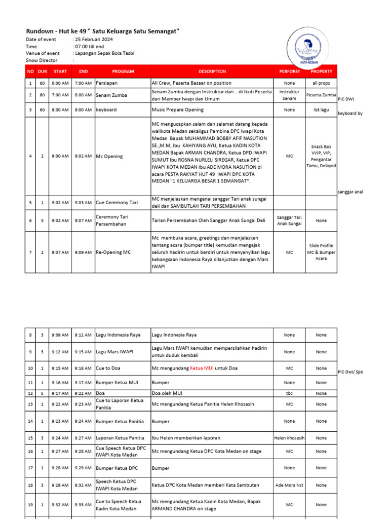 Rundown - Hut ke 49 " Satu Keluarga Satu Semangat"