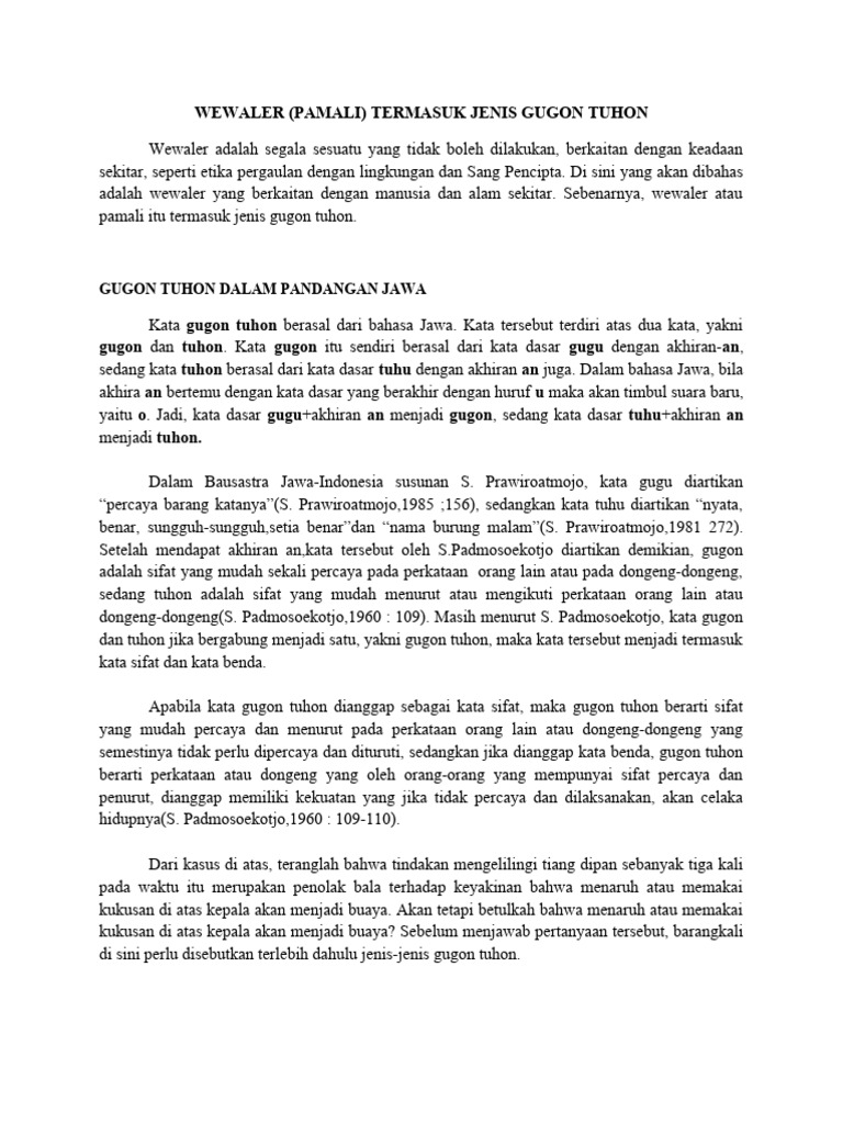 Jawa. Dalam memahami gugon tuhon, kita dituntut kepandaian menangkap maksud dari