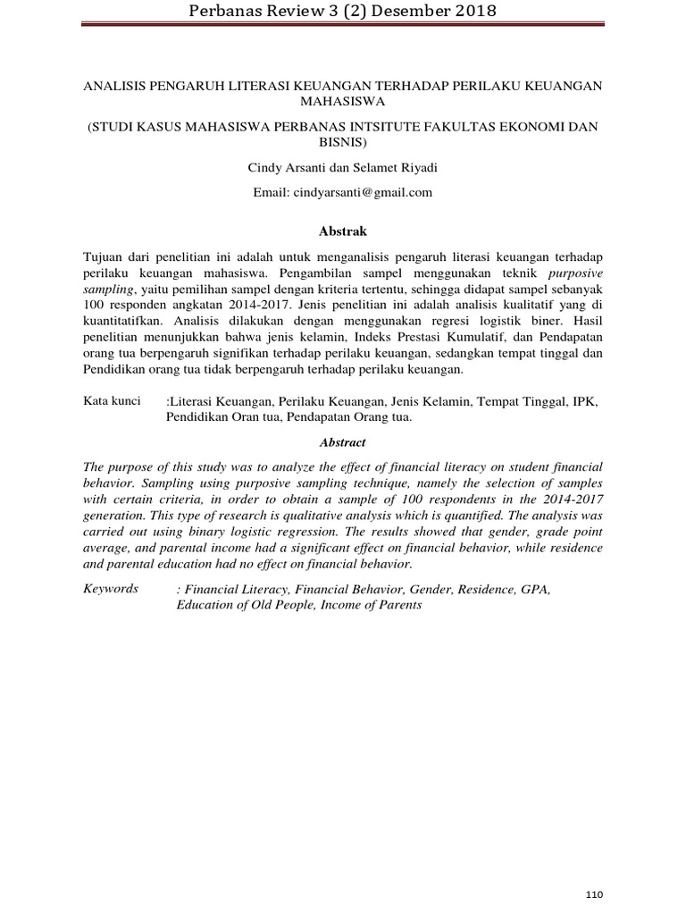 Rita , M. R., & Pesudo, B. (2014). Apakah Mahasiswa Sudah Melek Keuangan? Jurnal