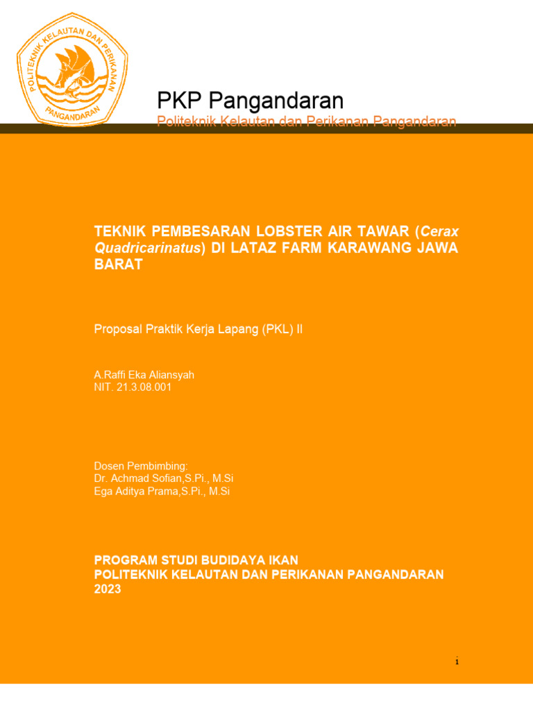 Air Tawar (Cerax Quadricarinatus) Di Lataz Farm Karawang Jawa Barat”. Proposal