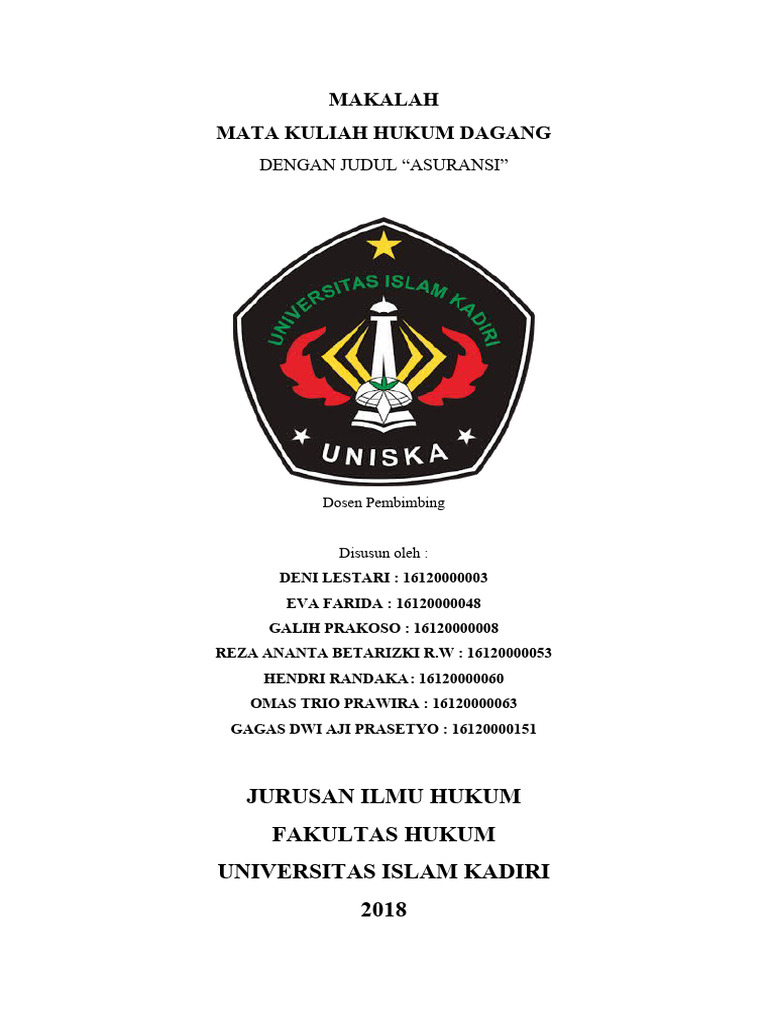 Asuransi sebagai lembaga Keuangan non bank mempunyai peranan penting dalam ikut