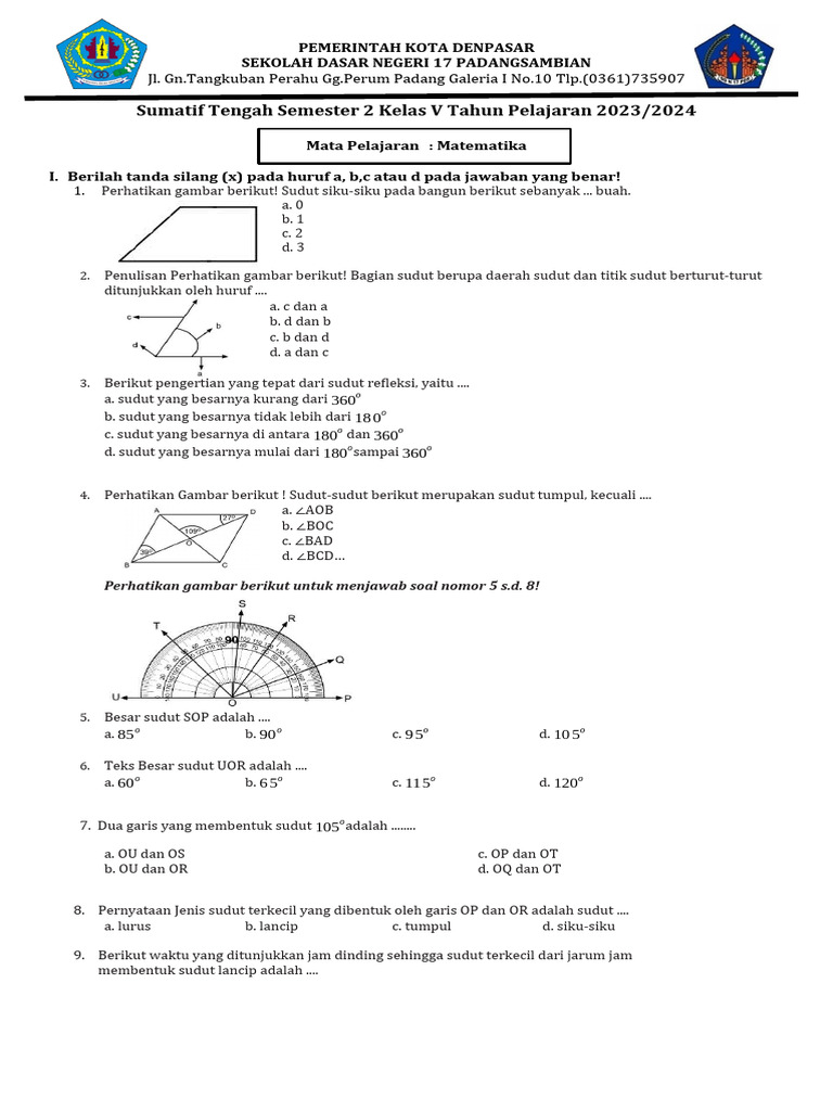 Sumatif Tengah Semester 2 Kelas V Tahun Pelajaran 2023/2024