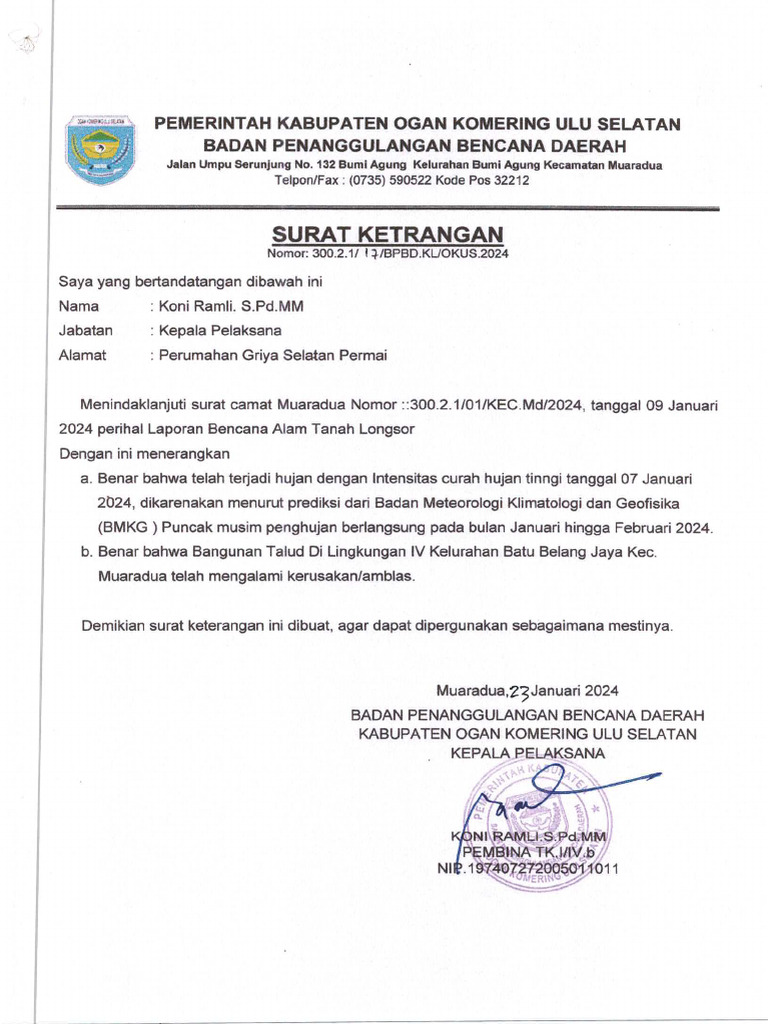 Perihal _—_: Laporan Bencana Alam Tanah Longsor Bapak Luran Btu Belang Jaya