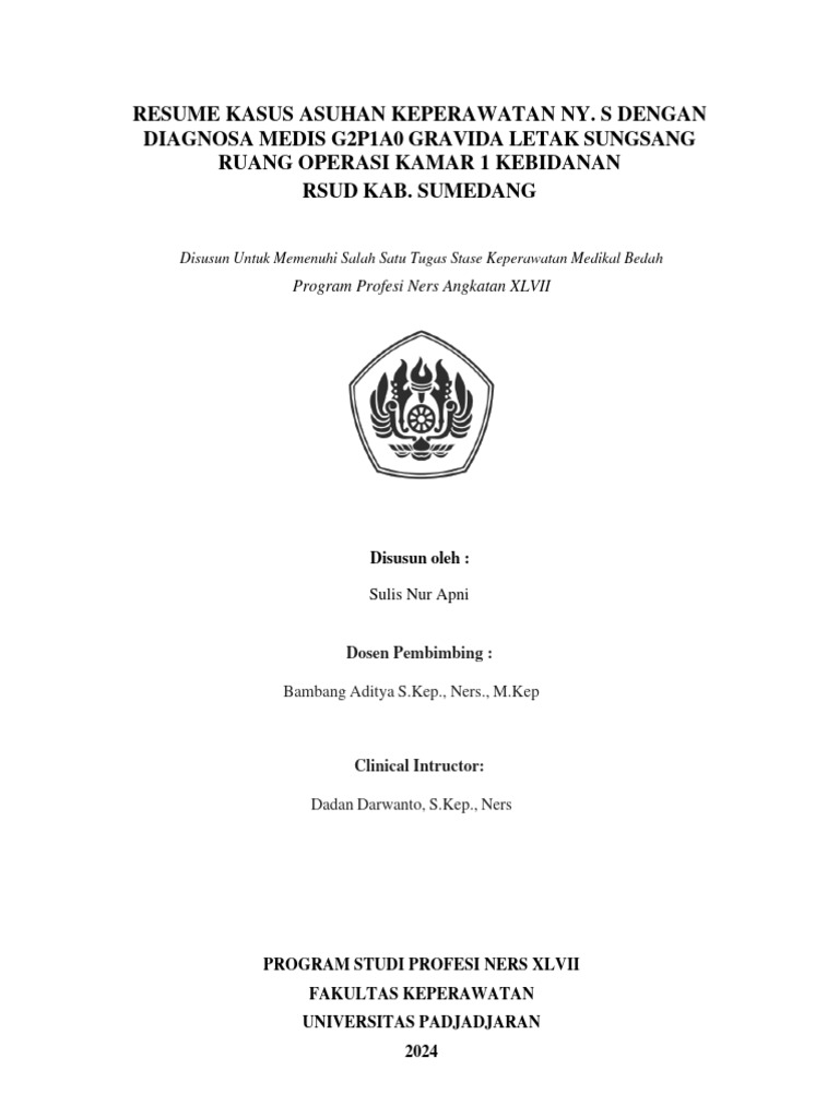 DIAGNOSA MEDIS G2P1A0 GRAVIDA LETAK SUNGSANG