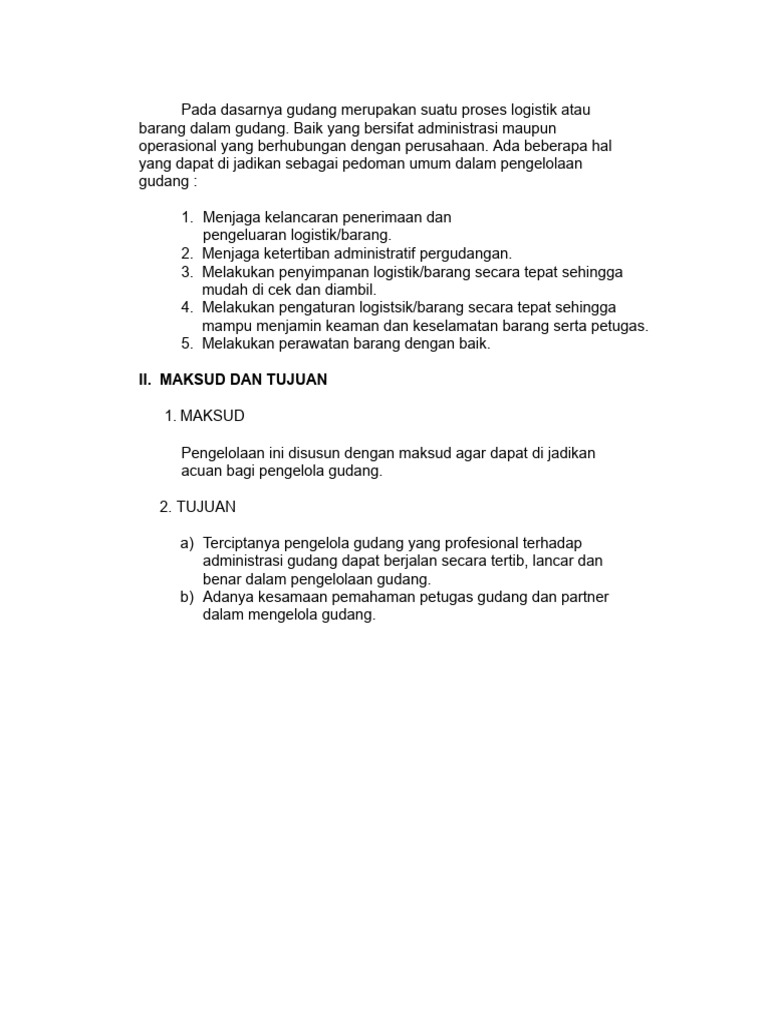 administrasi gudang dapat berjalan secara tertib, lancar dan