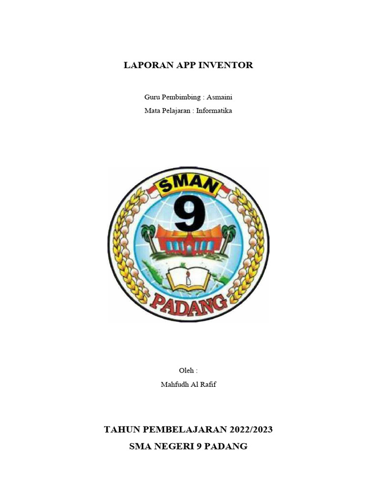 sehingga saya dapat menyelesaikan tugas yang berjudul “Pembuatan karya dari APP Inventor” ini