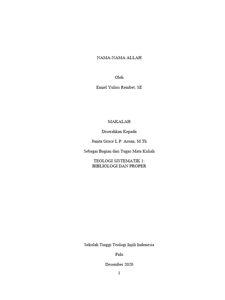 propria/nama diri) dalam Perjanjian Baru yaitu Theos, Kurios, Pater.Error: Reference