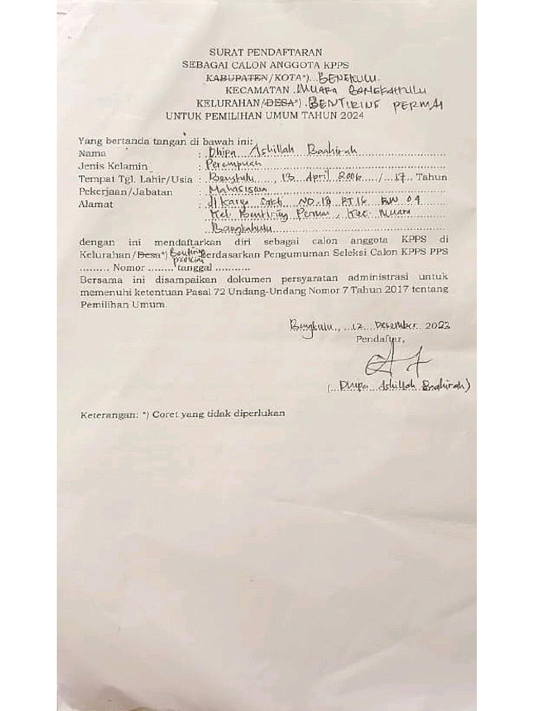 Surat Pendaftaran Kpps Lengkap