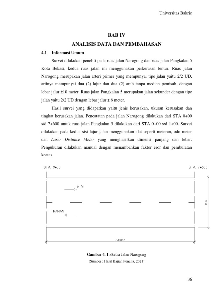 tingkat kerusakan jalan. Pencatatan pada jalan Narogong dilakukan dari STA 0+00