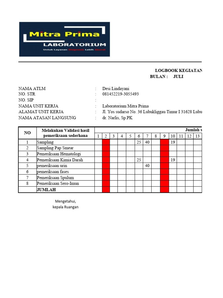 NAMA ATASAN LANGSUNG : dr. Narlis, Sp.PK