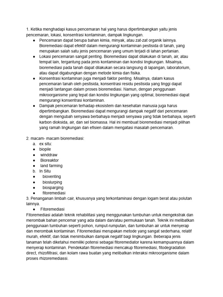 dipertimbangkan. Bioremediasi dapat mengurangi dampak negatif dari pencemaran