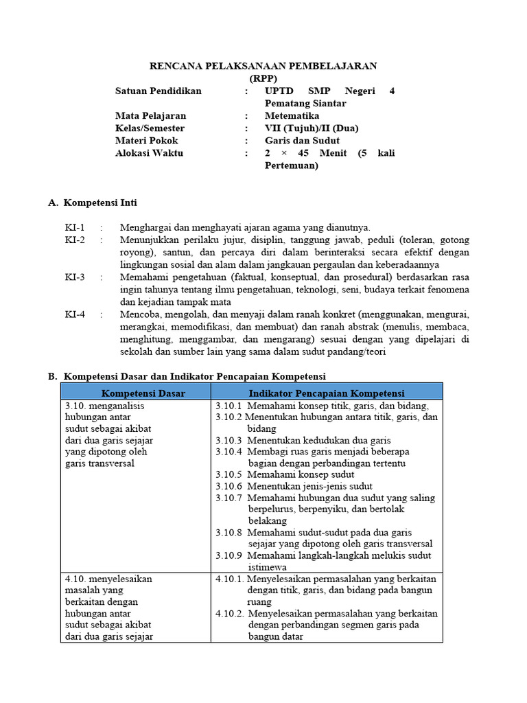 Kelas/Semester : VII (Tujuh)/II (Dua)