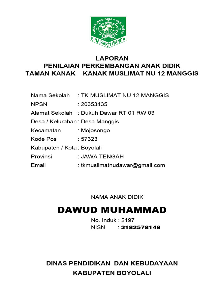 Laporan Perkembangan Anak Didik