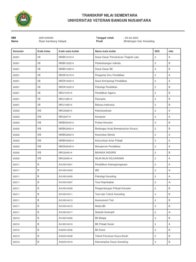 TRANSKRIP NILAI SEMENTARA