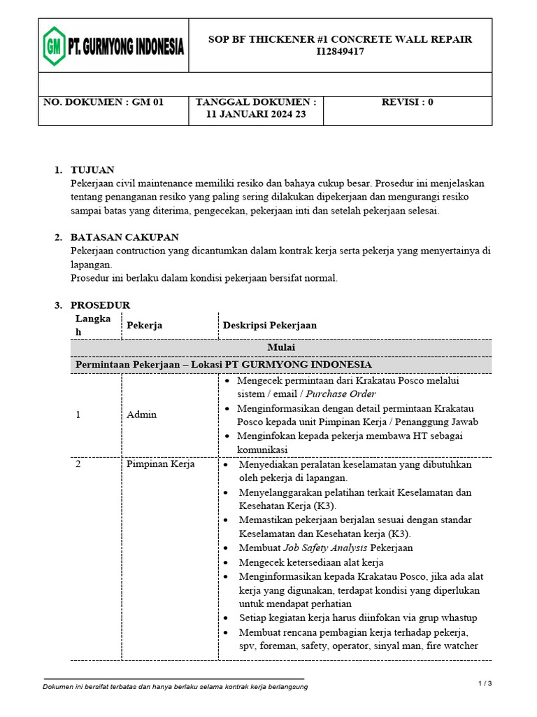 Pekerjaan civil maintenance memiliki resiko dan bahaya cukup besar. Prosedur ini menjelaskan