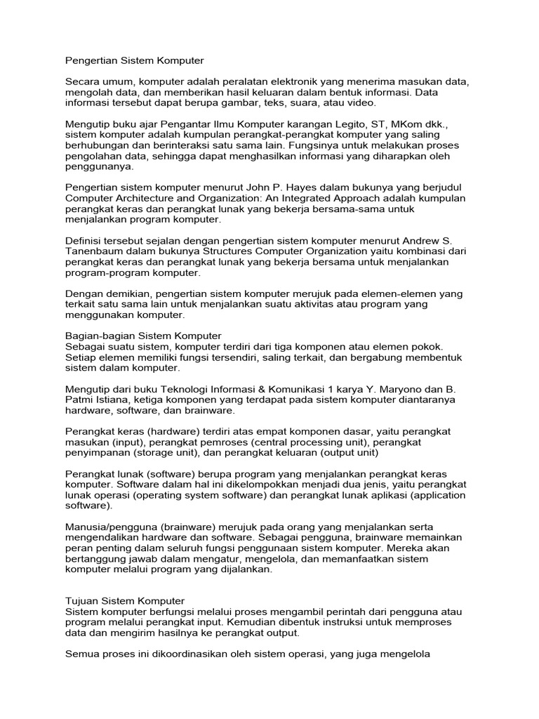 Definisi tersebut sejalan dengan pengertian sistem komputer menurut Andrew S.