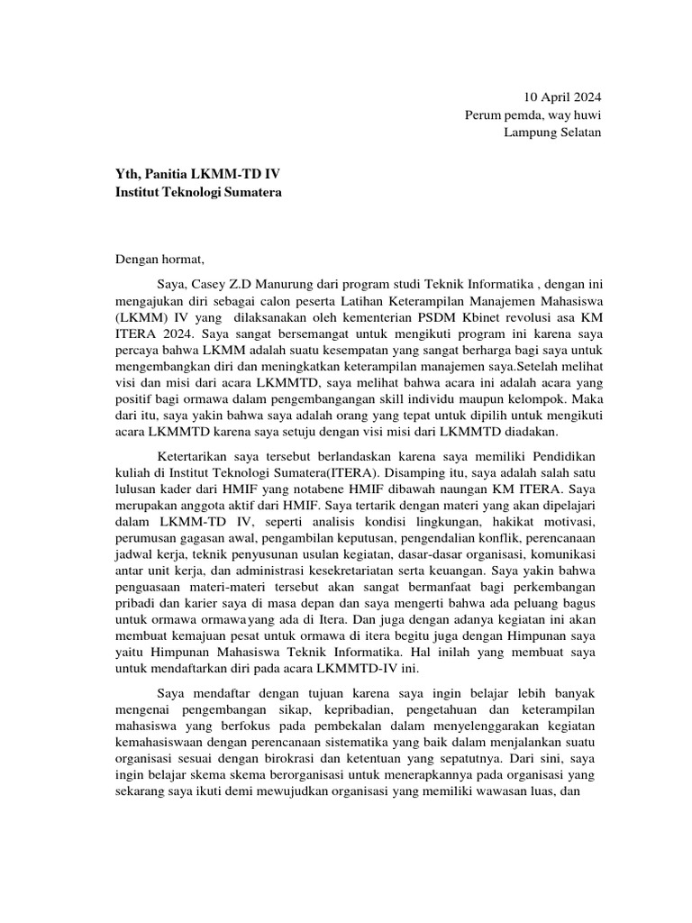 Yth, Panitia LKMM-TD IV